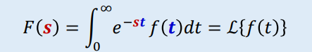 f(t) : 시간 t 영역에서의 함수 => F(s) : 복소수 s 영역에서의 함수