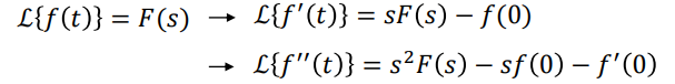 이와 같이 f(t)의 미분계수 n에 따라 s의 지수계수 또한 n으로 뒤의 식 또한 - s^(n-1)f(0) - s^(n-2)f'(0) - .....가 된다.