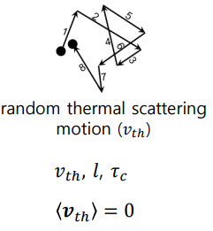 전자가 온도에 의해 운동을 한다. 그러나 이로 인한 종합적 이동도를 봤을 때 그 양은 0이다. (수학적 계산에서 움직임X)