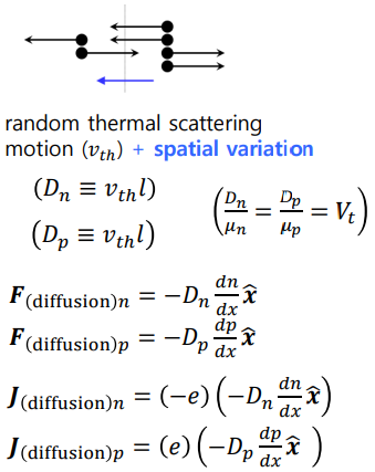 spatial variation of carrier : 공간에 운반자 농도 차이가 있는 상태